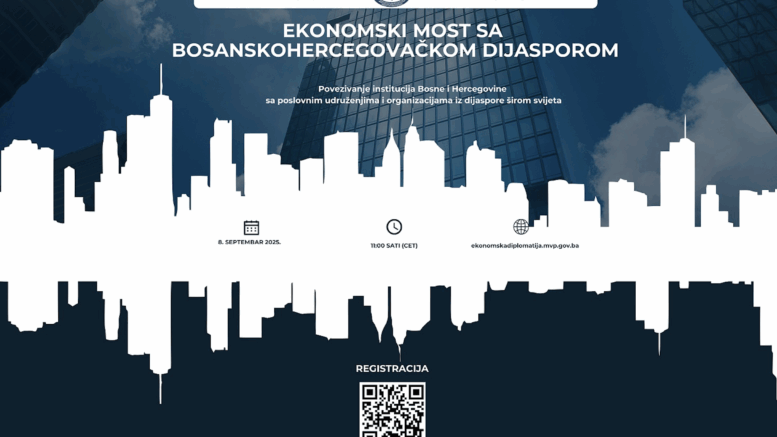 Ministarstvo vanjskih poslova Bosne i Hercegovine će 8. septembra 2025. godine organizovati prvi online forum „Ekonomski most sa bosanskohercegovačkom dijasporom“, radi povezivanja i mapiranja relevantnih poslovnih udruženja, komora, klubova, inicijativa i drugih poslovnih organizacija iz bh. dijaspore širom svijeta.
